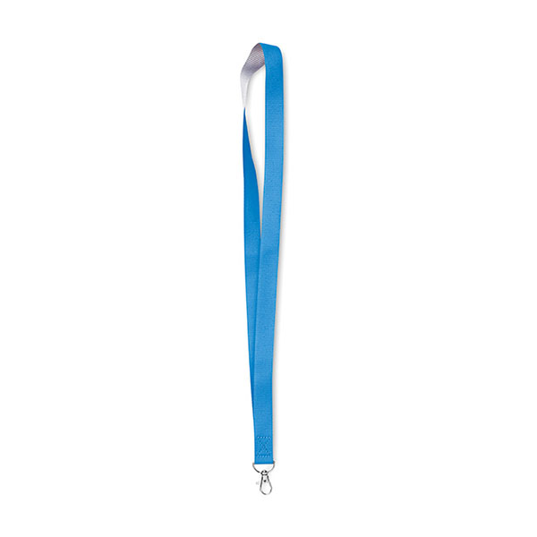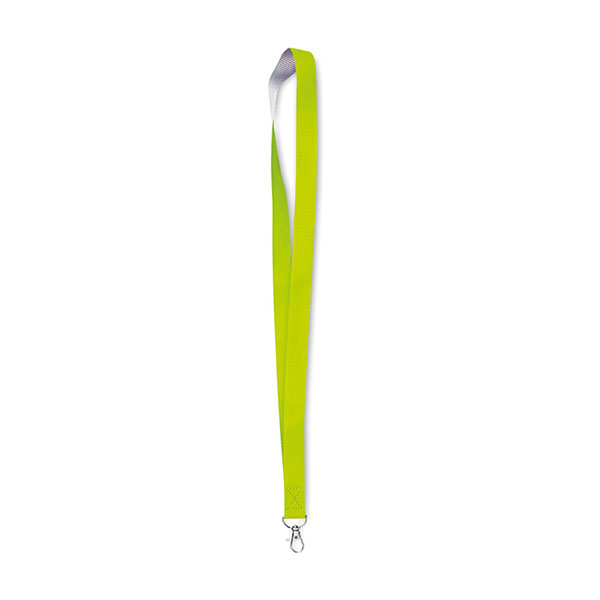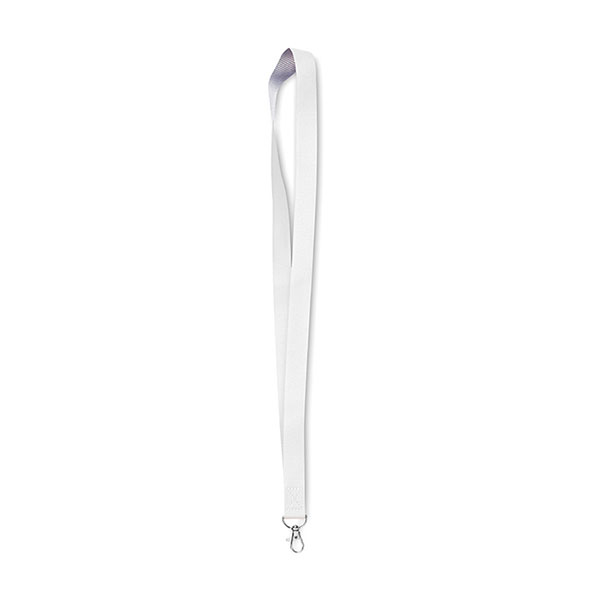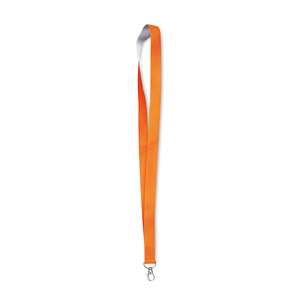 Lanyard with metallic hook. Dimensions: 2 x 90 cm. Colours: white, orange, red, green, pink, blue, light blue, navy blue, yellow and black.